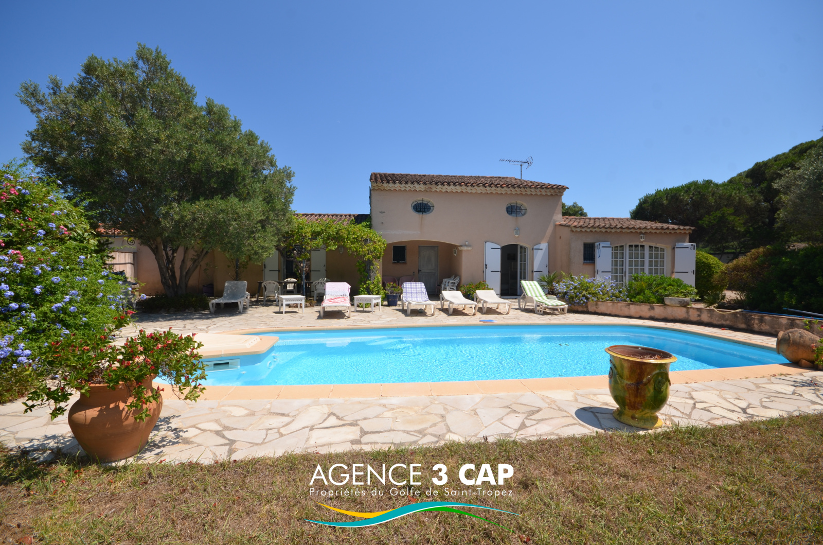 Ramatuelle (83350)Située entre le village de Ramatuelle et la plage de l'Escalet, cette villa offre un beau terrain de 1800m² idéalement exposé au sud, agrémenté d'une jolie piscine.